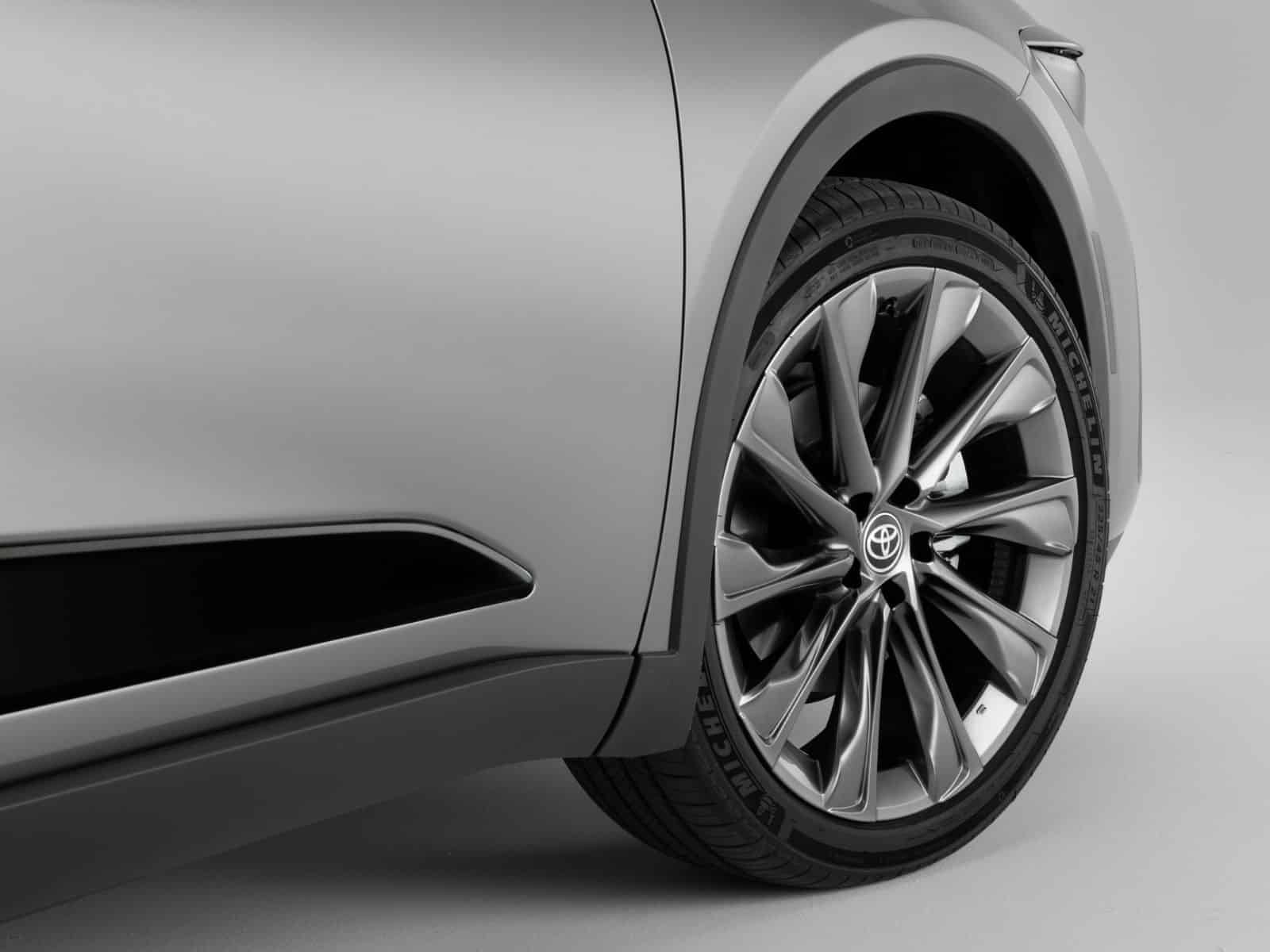 El diseño mantiene líneas elegantes pero con mayor altura que los sedanes tradicionales, lo que hace más fácil subir y bajar del vehículo. Las versiones traen llantas de 19 a 21 pulgadas según el nivel de equipamiento. Además, Toyota añadió la versión Nightshade con detalles exteriores en negro mate.