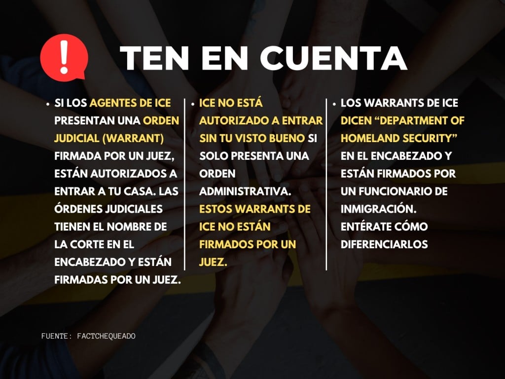 LOS AGENTES DE ICE ESTÁN AUTORIZADOS A ENTRAR EN TU CASA SI PRESENTAN UNA ORDEN (WARRANT) FIRMADA POR UN JUEZ