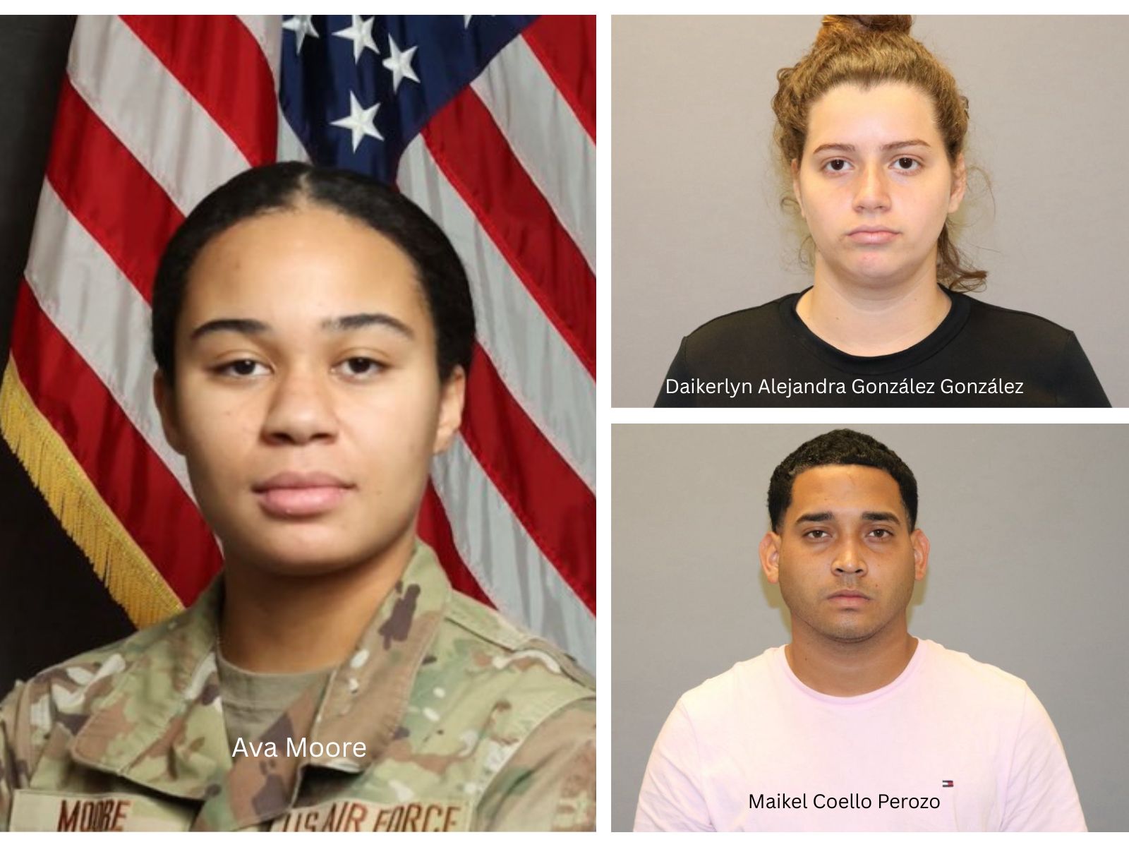 Ava Moore (izquierda) tenía 18 años y era una aspirante a cadete de la Fuerza Aérea de Estados Unidos. Las autoridades detuvieron a Daikerlyn Alejandra González González (arriba, derecha) y a Maikel Coello Perozo, ambos venezolanos. (Cortesía Departamento de Policía de Grapevine, Texas)