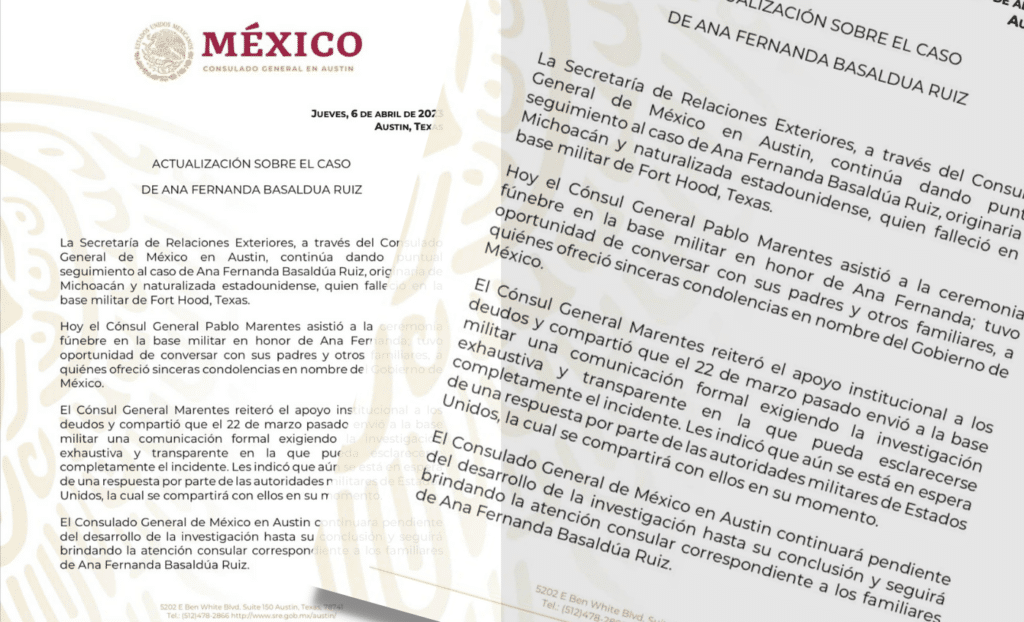 El cónsul general de México en Austin (Texas), Pablo Marentes, dijo en un comunicado que el consulado ha exigido a las autoridades militares “una investigación exhaustiva y transparente en la que pueda esclarecerse completamente el incidente”.