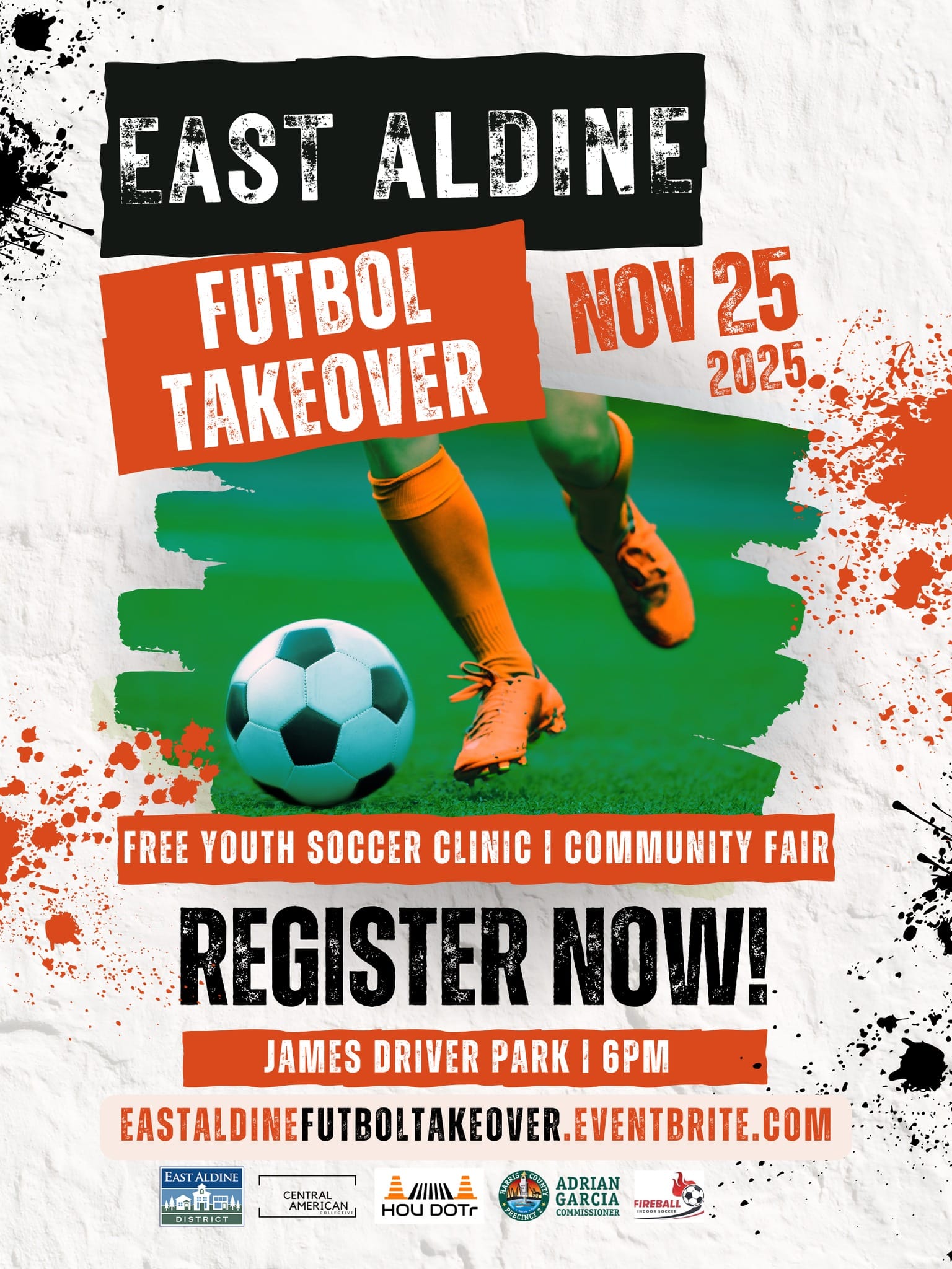 La organización Central American Collective invita a la comunidad de East Aldine, Texas, a participar en una jornada de fútbol, convivencia y diversión familiar. Niños y niñas de 10 a 14 años podrán inscribirse en una clínica gratuita de fútbol dirigida por entrenadores certificados, con ejercicios de tiro, pase y control del balón.