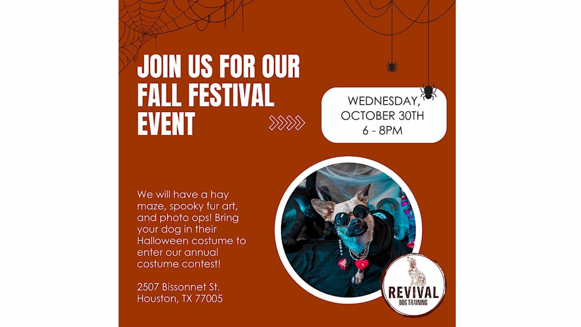Participa del festival de otoño que tendrá una variedad de actividades, como un concurso de disfraces, juegos para perros y golosinas tanto para personas como para mascotas.
