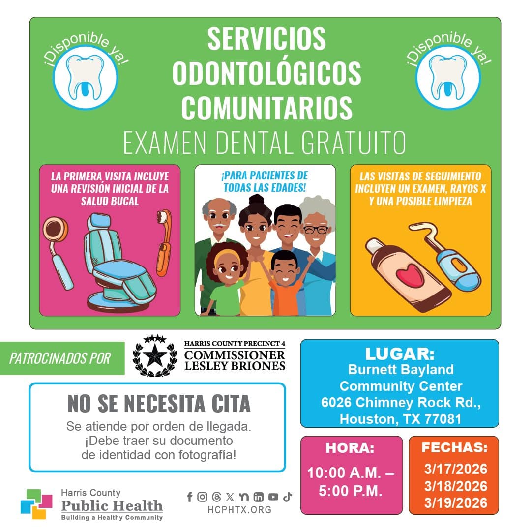 El Departamento de Salud Pública del condado Harris invita a la comunidad a la campaña de tres días de exámenes dentales totalmente gratuitos. Todas las edades serán aceptadas. Se requiere presentar ID y sin reserva de cita.