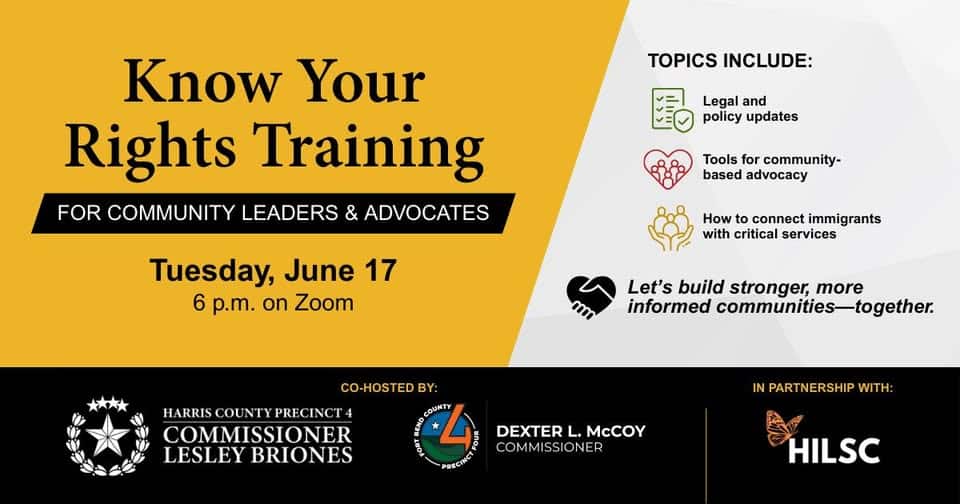 La oficina de la comisionada del distrito 4, Lesley Briones, invita a la comunidad a participar del taller Know Your Rights Training a través de Zoom. El evento informará a los asistentes sobre las últimas actualizaciones en materia legal, herramientas para la defensa de la comunidad y cómo los inmigrantes contactarse con los servicios básicos. La inscripción es gratuita y a través de la web.