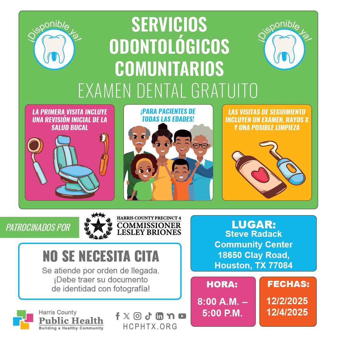 Steve Radack Community Center 18650 Clay Road, Houston, Texas, Estados UnidosSe ofrecen evaluaciones dentales gratuitas del 2 al 4 de diciembre de 2025 de 8:00 a 17:00 horas, con una pausa de 12:00 a 13:00 horas, y no estará disponible […]