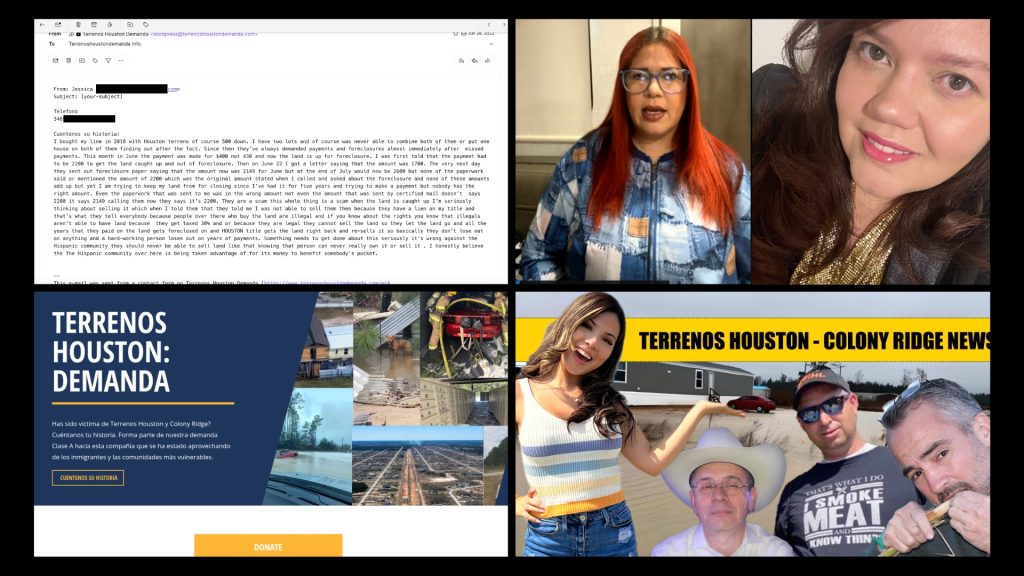 Mucho antes de que su caso llegara a audiencias legislativas o demandas judiciales, las hermanas tomaron otra decisión: crearon una página web llamada Terrenos Houston Demanda. No lo hicieron como activistas profesionales ni como líderes visibles, sino como compradoras que necesitaban entender qué les estaba pasando. A partir de ahí comenzaron a llegar testimonios: personas que se sentían identificadas, engañadas, estafadas; compradores que decían vivir situaciones similares pero que no se atrevían a hablar por miedo —al crédito, a perder lo poco que tenían, o a las consecuencias migratorias.